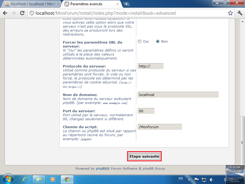 Nous arrivons maintenant à l’installation de notre forum phpBB. Cliquez sur Etape suivante.