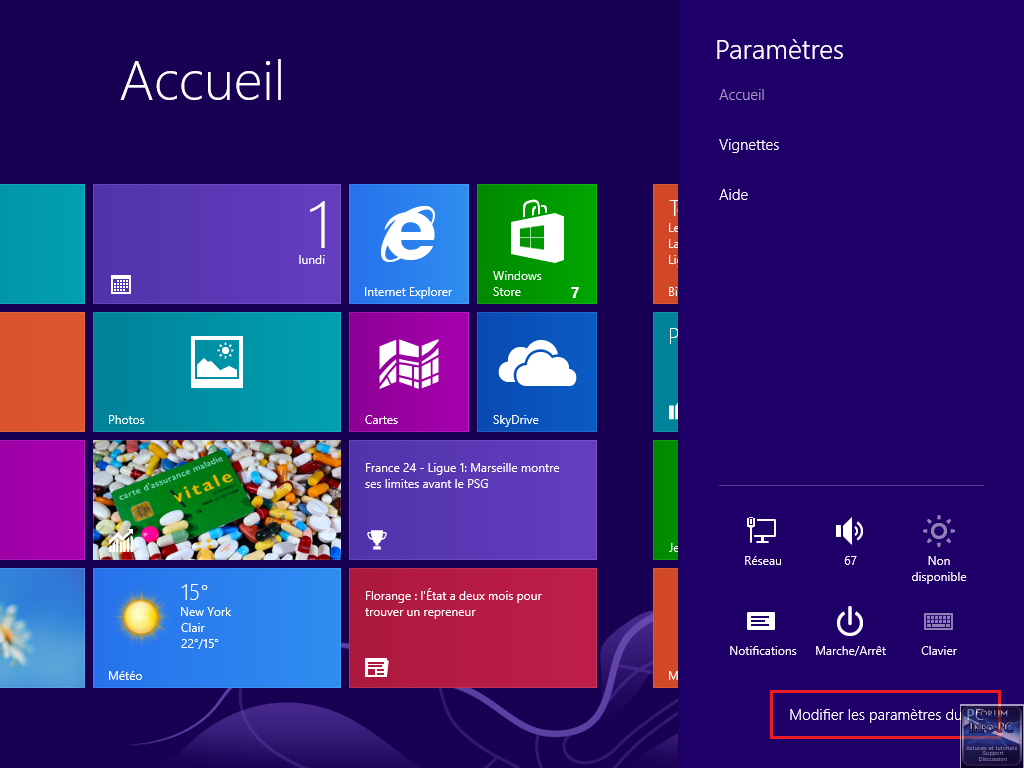 Modifier les paramètres du PC.